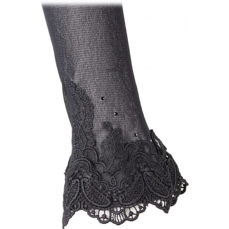 Elegante Ärmlinge mit Daumensteg. Diese fingerlosen Handschuhe wurden von Hand liebevoll mit Spitze und Strass verziert und verleihen jedem Outfit den letzten Schliff.