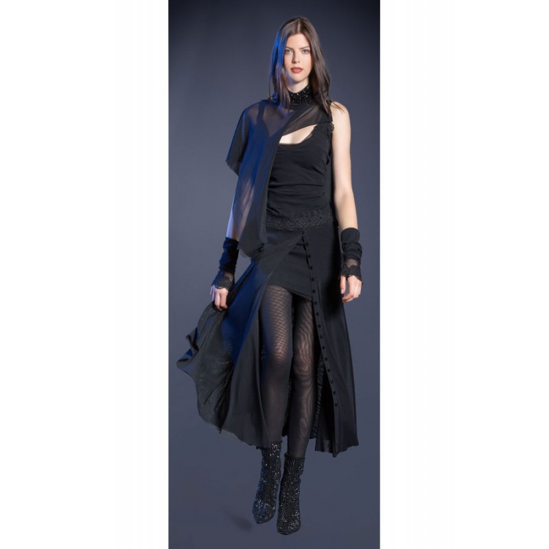 Zauberhafter Poncho mit Knopfleiste und feinen Spitzen- und Strass-Applikationen, welche in liebevoller Handarbeit angebracht wurden. Elegante, schimmernde Jetknöpfe schmücken die zarte Knopfleiste. Mit einer leichten Drehung verändern Sie den Poncho zum Minicape, um Ihre Arme auf elegante Art zu verdecken.