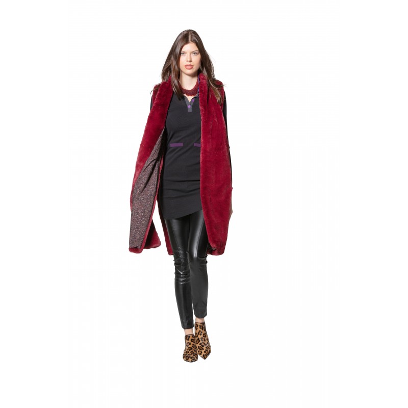 Sehr edel wirkt dieses ärmellose Kleidungsstück auch mit Gürtel. Es verfügt über Innentaschen und ist mit einem sehr hübschen Stoff aus Viscose eingefüttert.