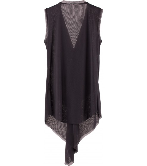 Sehr schönes, romantisch angehauchtes Top. Das ärmellose Top besticht durch das raffinierte Flatterteil im vorderen Mittelbereich. Dieses Rüschenteil kann lässig nach unten hängen, was sehr figurfreundlich ist, oder, um die Taille zu betonen, kann es auch gebunden werden. Ein Highlight für Ihre Garderobe.